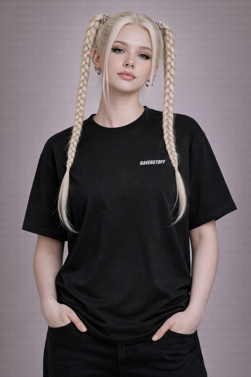 Der Oversized Fit verstärkt den Charakter des Designs. Schwer, locker, präsent. Das Shirt fällt nicht auf – es wirkt, besonders im Clublicht. Camouflage heißt hier nicht Tarnung, sondern Zugehörigkeit: Wer es erkennt, erkennt dich.